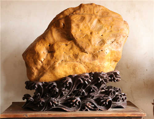 黄蜡石的纹理诡谲多变,丰富生动,往往构成了耐人寻味的各种图案。它主要是在成岩时期原生或岩石受矿液浸染而成,也有在岩石后期的风化、蚀变、碰撞、矿物填充、水冲等作用所形成。